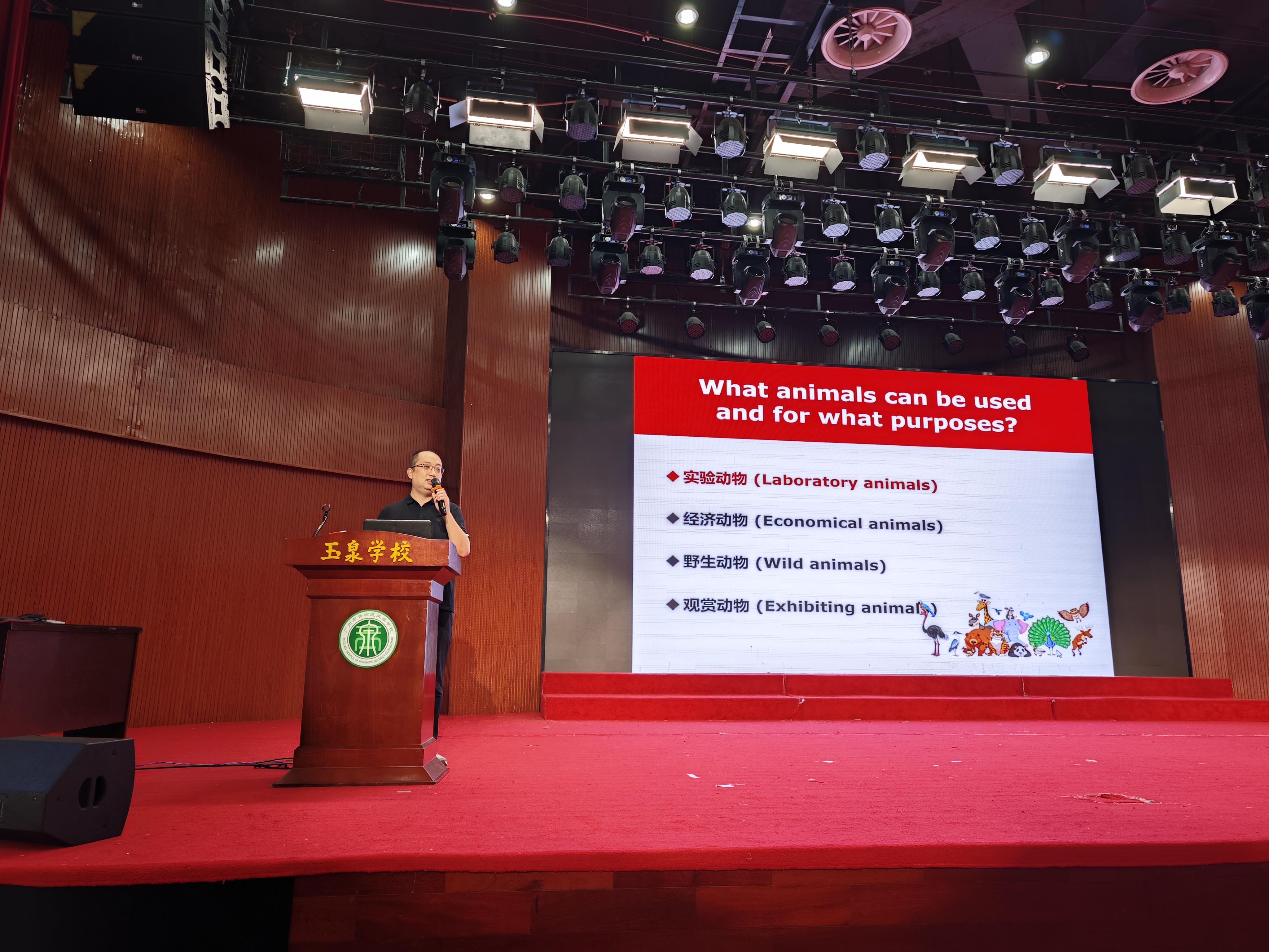 三名老師結合自身研究領域與學生認知特點,量身定制講座內容,讓前沿科學知識“接地氣”。單永禮副研究員以《神奇的干細胞》為題,講述干細胞的特點及目前研究成果,為同學們揭開了生命起源與再生醫(yī)學的奧秘。閆海釗副研究員帶來《趣談實驗動物——實驗動物模型在人類疾病研究中的應用》講座,生動地介紹了兔子、豬等實驗動物如何助力醫(yī)學進步,傳遞科學研究的嚴謹態(tài)度與人文關懷。李磊博士聚焦《獸面仁心的二師兄——異種移植與異種嵌合》主題,深入淺出地講解了異種器官移植的前沿進展,引導同學們思考生命科學的倫理邊界與創(chuàng)新價值。三場講座均設置了互動環(huán)節(jié),學生們踴躍提問,老師耐心解答,在輕松愉快的氛圍中激發(fā)了青少年的科研興趣與探索精神。