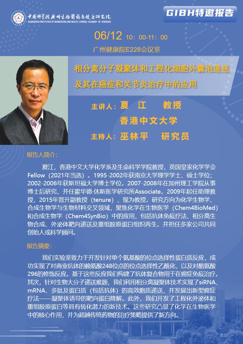 2025年6月12日特邀報告:相分離分子凝聚體和工程化細胞外囊泡遞送及其在癌癥和關節炎治療中的應用