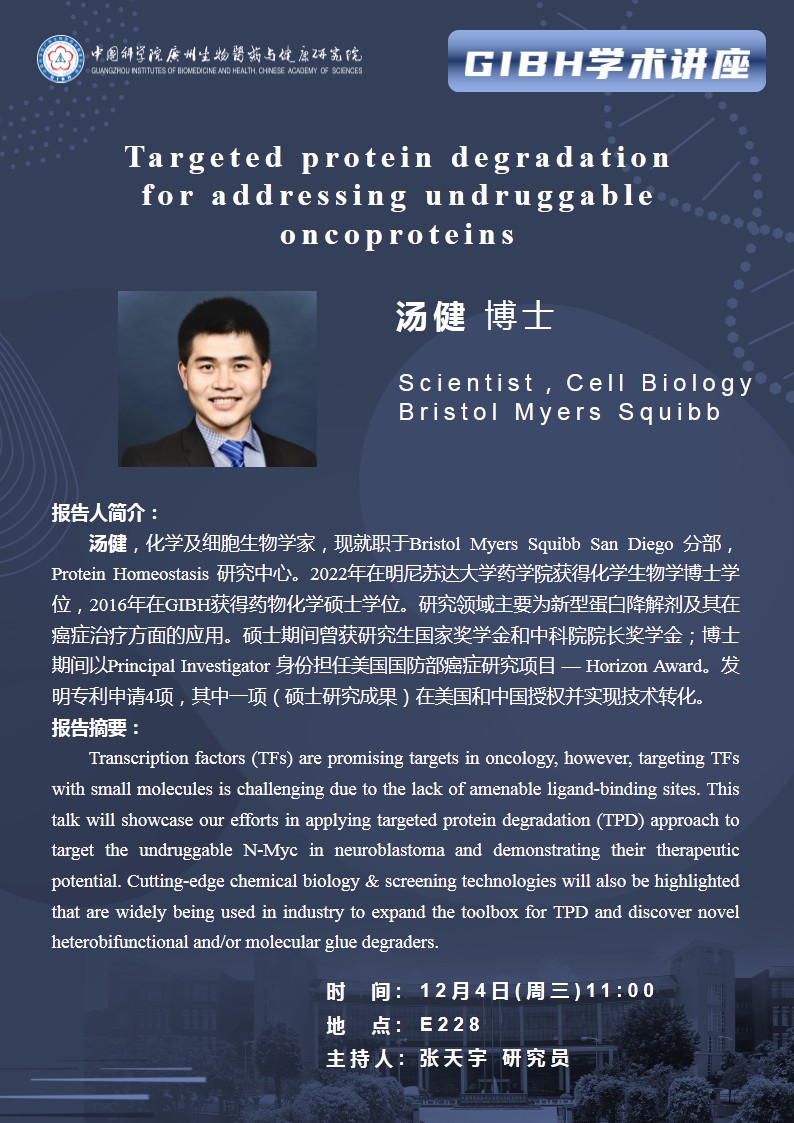 2024年12月4日學術講座:Targeted protein degradation for addressing undruggable oncoproteins