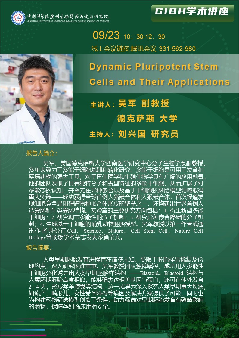 2025年9月23日學術講座:Dynamic Pluripotent Stem Cells and Their Applications